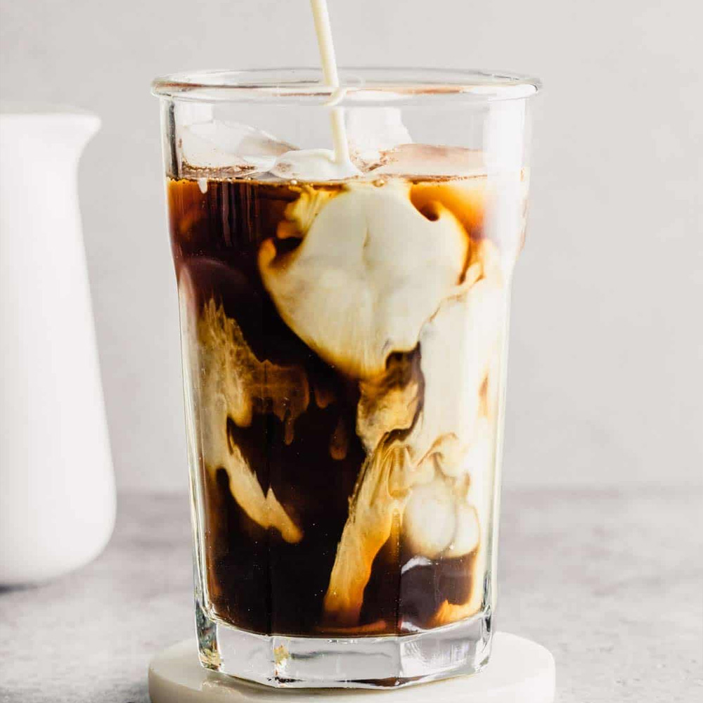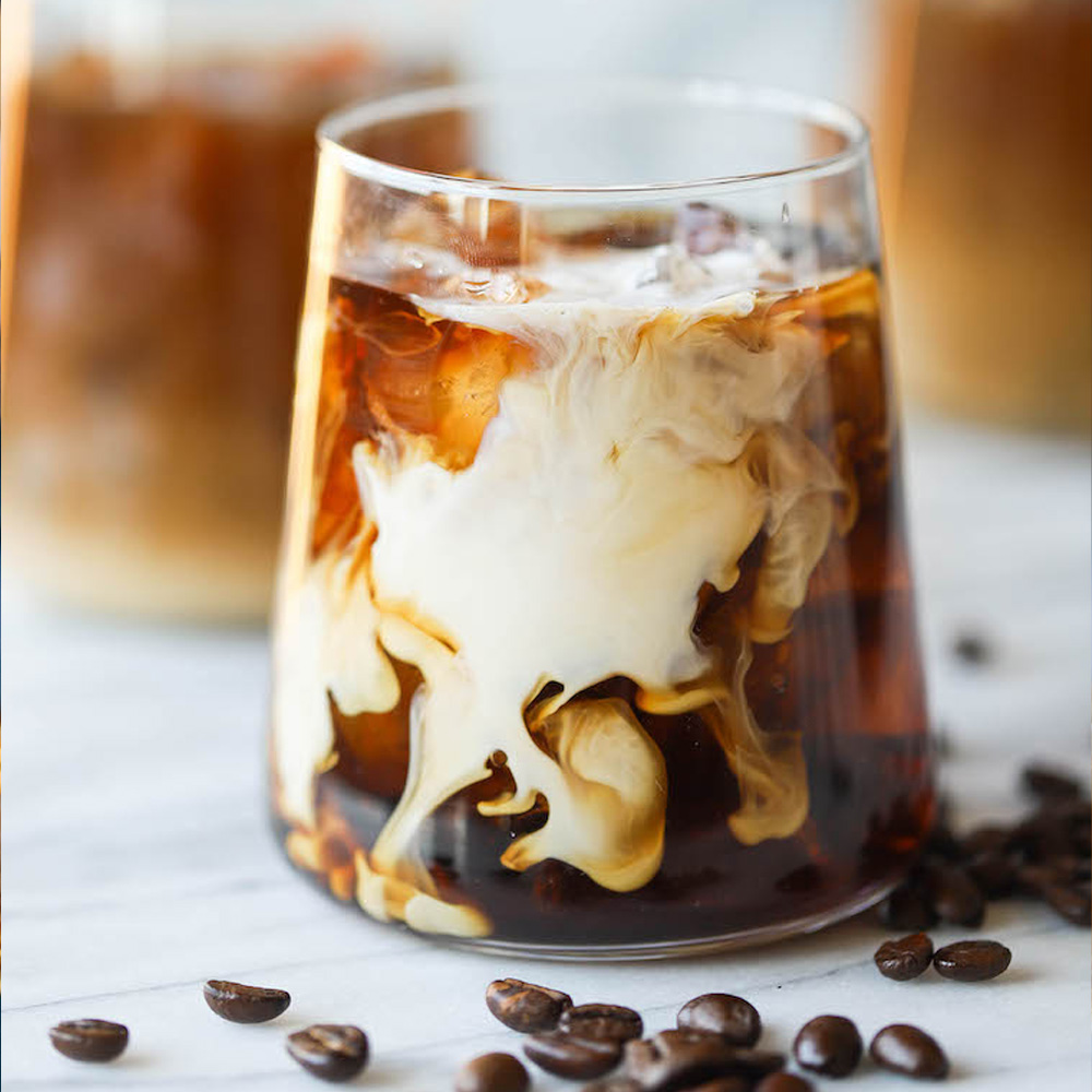 ۳۰۰ میلی لیتر، یک شات اسپرسو ۸۰% عربیکا و ۲۰% روبوستا، آب سرد، یخ